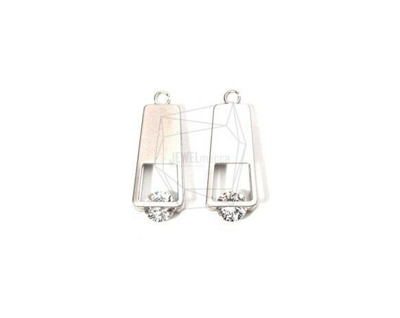 PDT-1615-MR/2Pcs/Zipper Slider Pendant/ 10mm x 25mm/Matte Rhodium Plated Over Brass,CZ