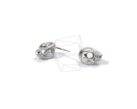 ERG-838-MR/2PCS/Star Forehead Skull Earring /7mm X 14mm/Matte Rhodium/Plated Over Brass/Silver post