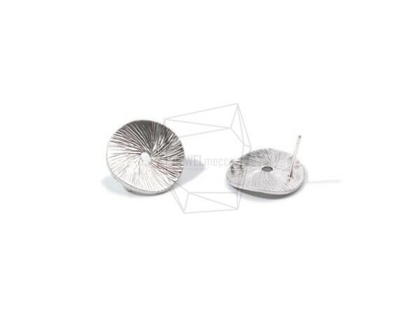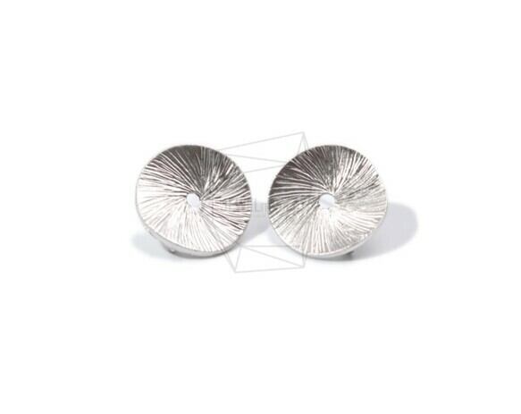 ERG-839-MR/2PCS/Textured Curved Round Earring Post/15mm X 15mm/Matte Rhodium/Plated Over Brass/Silver post