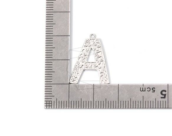 PDT-1630-MR/2PCS/Alphabet A Pendant/17mm X 21mm/Matte Rhodium/Plated Over Brass