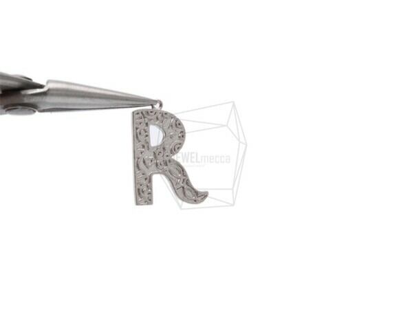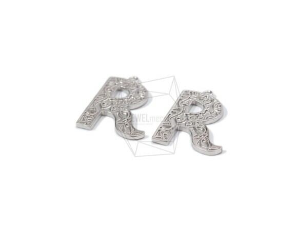 PDT-1633-MR/2PCS/Alphabet R Pendant/16mm X 21mm/Matte Rhodium/Plated Over Brass