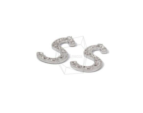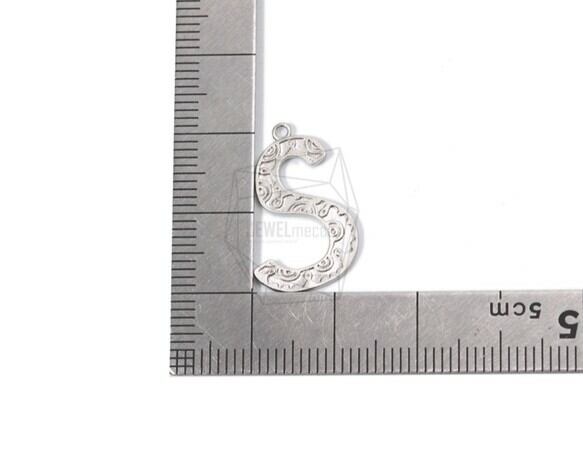 PDT-1634-MR/2PCS/Alphabet S Pendant/13mm X 21mm/Matte Rhodium/Plated Over Brass