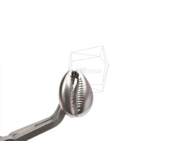 PDT-1636-MR/2PCS/Coffee Bean Pendant/12mm X 20mm/Matte Rhodium/Plated Over Brass