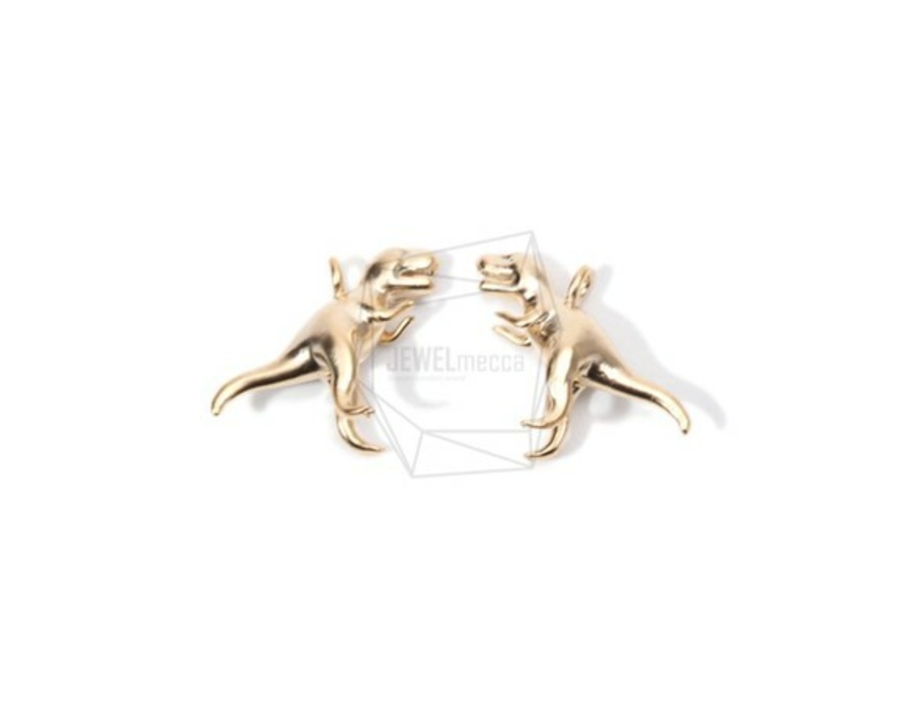 PDT-1623-MG/2PCS/Dinosaur T-Rex Pendant/13mm X 15mm/Matte Gold/Plated Over Brass