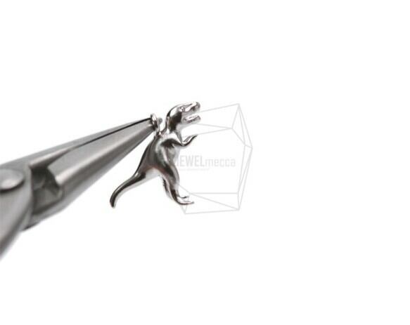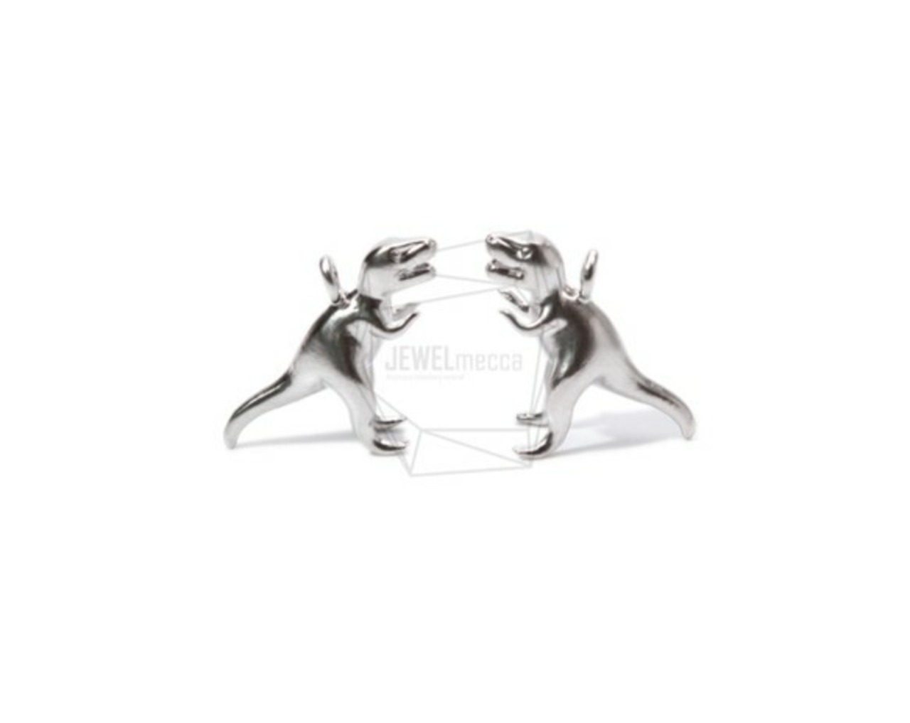 PDT-1623-MR/2PCS/Dinosaur T-Rex Pendant/13mm X 15mm/Matte Rhodium/Plated Over Brass