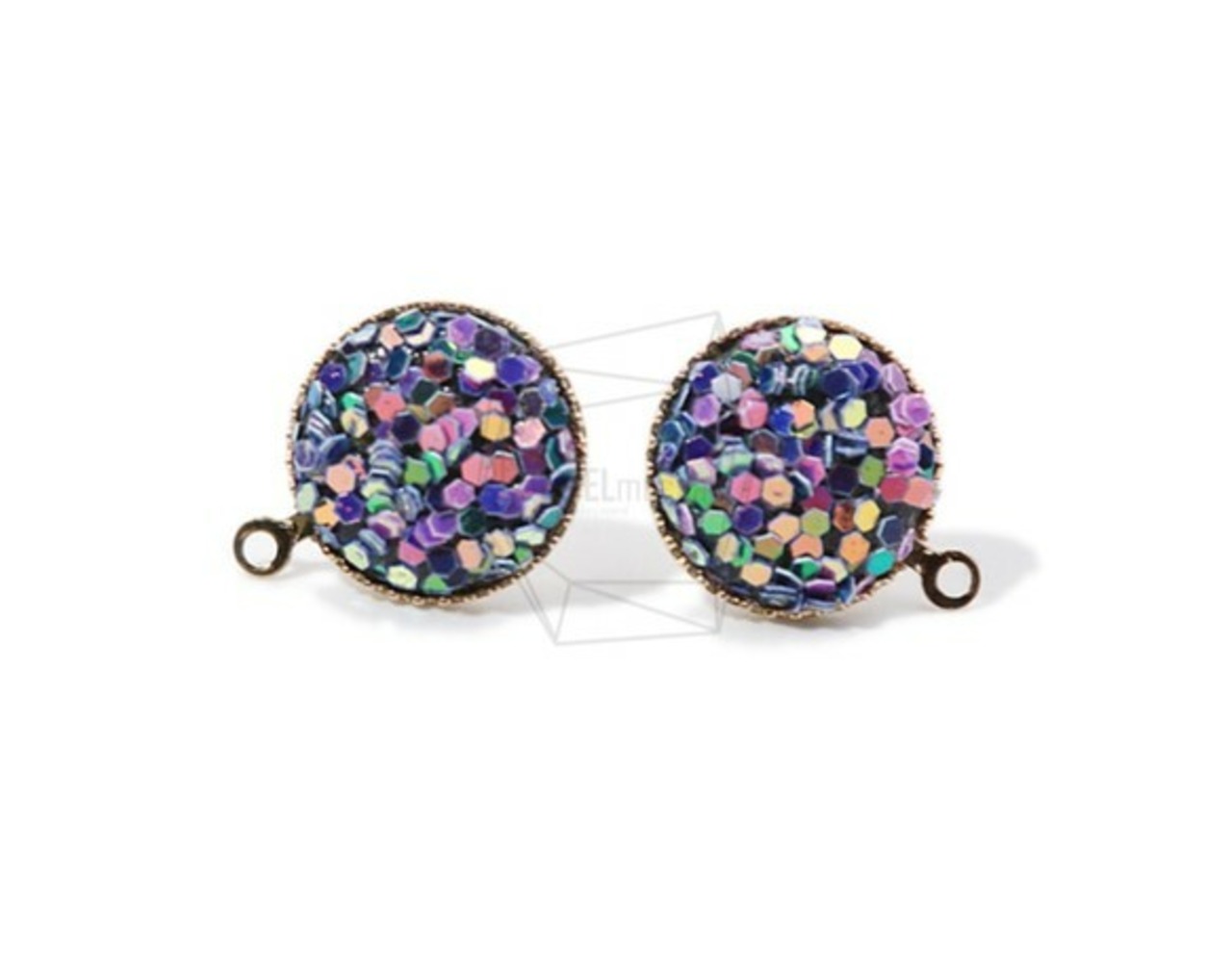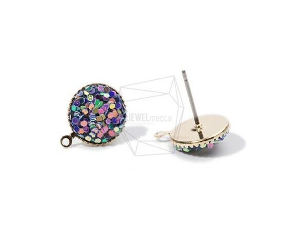ERG-853-G/2PCS/Round Earring Post/11mm X 14mm/Gold /Plated Over Brass/Titanium post