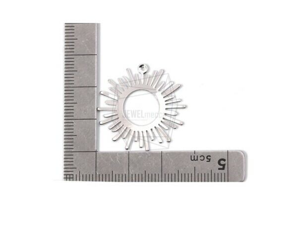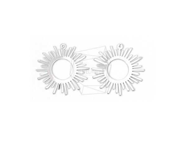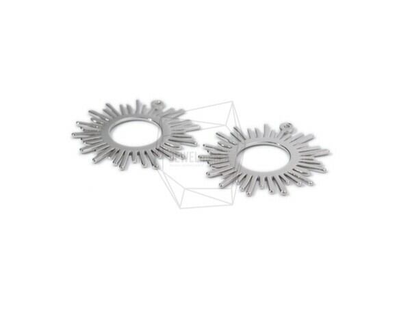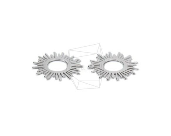 PDT-1639-R/2PCS/Sunflower Pendant/28mm x 28mm/Rhodium Plated over Brass