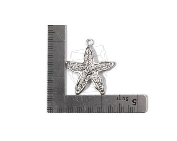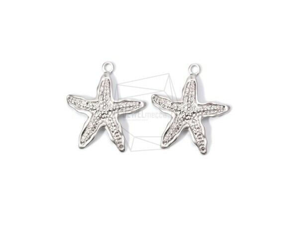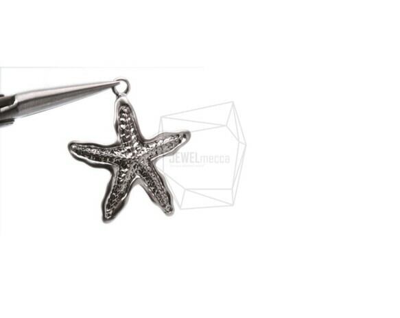 PDT-1641-MR/2Pcs- starfish Pendant/ 28mm x 32mm/ Matte Rhodium Plated Over tin