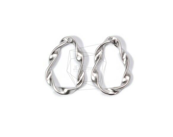 PDT-1642-MR/2pcs/Twisted Wire Pendant/18mm x 28mm/Matt Rhodium Plated Over tin