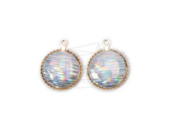 PDT-1644-G/2PCS/Aqua Round Shape Pendant/12mm X 13mm/Gold Plated Over Brass/polyester