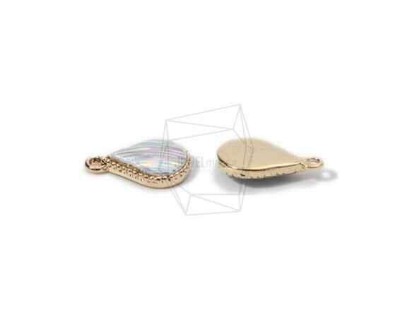 PDT-1645-G/2PCS/Aqua Drop Shape Pendant/7mm X 13mm/Gold Plated Over Brass/polyester