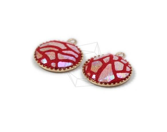 PDT-1646-G/2PCS/round Pendant/12mm X 13mm/Gold Plated Over Brass/polyester