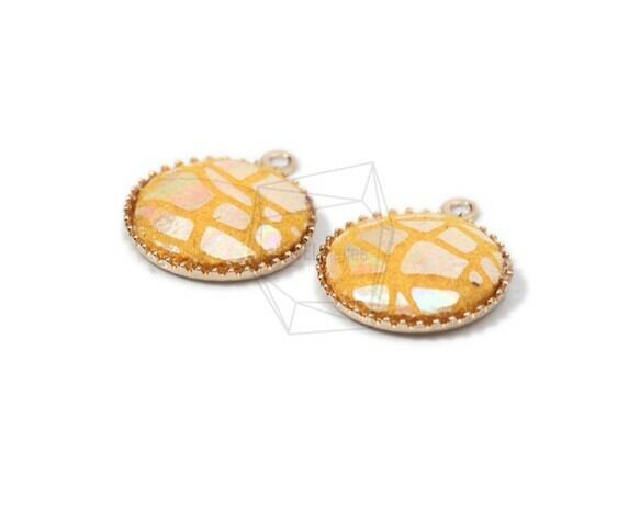 PDT-1647-G/2PCS/round Pendant/12mm X 13mm/Gold Plated Over Brass/polyester
