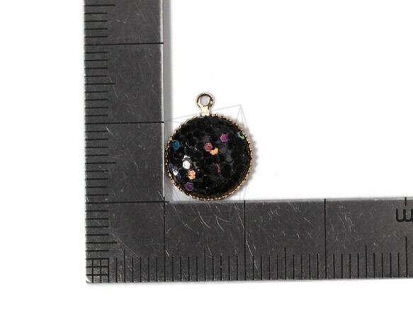 PDT-1653-G/2PCS/round Pendant/12mm X 13mm/Gold Plated Over Brass/polyester
