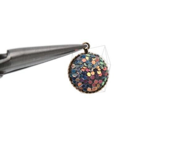 PDT-1654-G/2PCS/round Pendant/12mm X 13mm/Gold Plated Over Brass/polyester