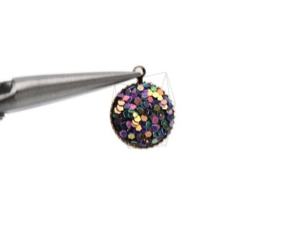 PDT-1655-G/2PCS/round Pendant/12mm X 13mm/Gold Plated Over Brass/polyester