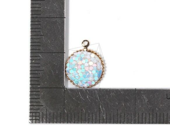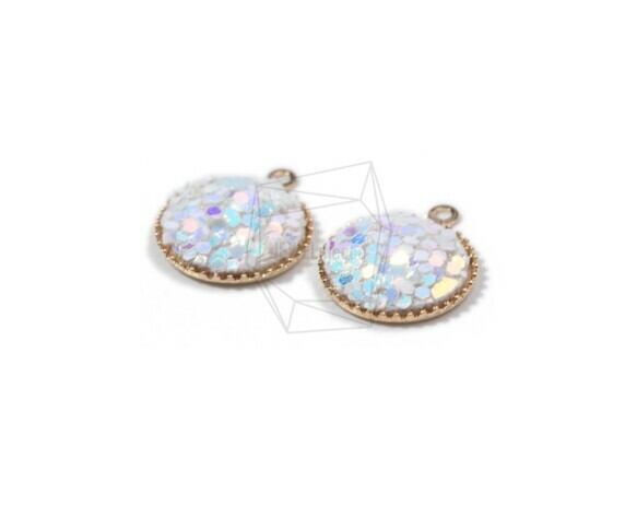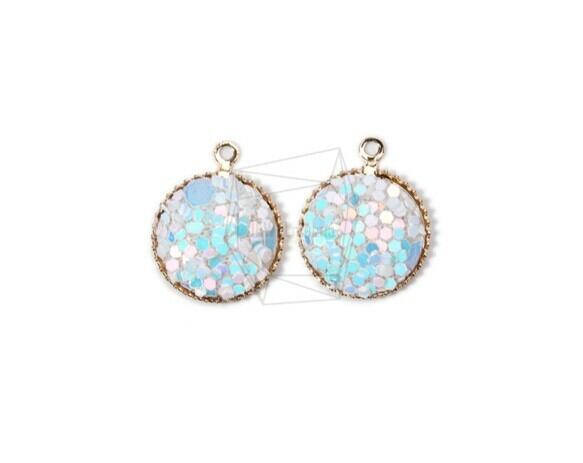 PDT-1656-G/2PCS/round Pendant/12mm X 13mm/Gold Plated Over Brass/polyester