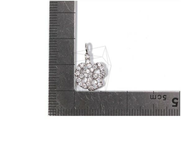 PDT-1658-R/1PCS/Four Leaf With Cubic Pendant/12mm X 18mm/Rhodium Plated Over Brass/CZ