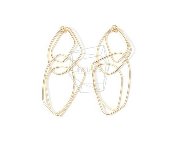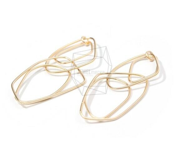ERG-700-MG/2PCS/Layered Geometric Dangle Earring Charm/40mm X 70mm/Matte Gold Plated Over Brass