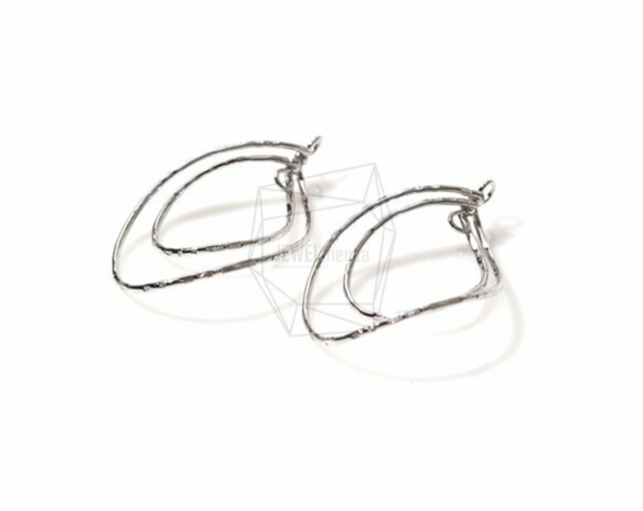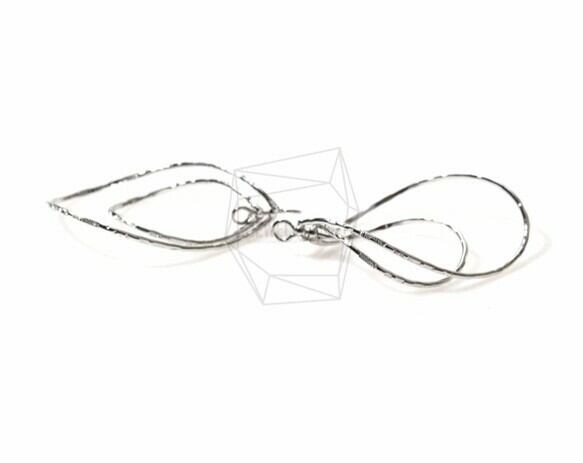 PDT-1085-R/2PCS/Small Hammered Double Teardrop Hoop Pendant/24mm x 37mm/Rhodium Plated over Brass