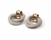 BSC-405-G/2pcs/Double ring Wooden Charm /25mm x 33mm/Handmade wooden round beads