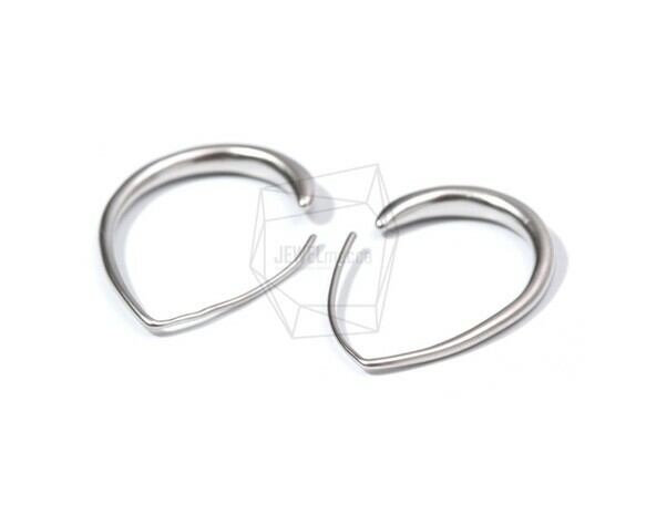 ERG-855-MR/2PCS/Teardrop Wire Earring/22mm x 34mm/Matte Rhodium Plated over Brass