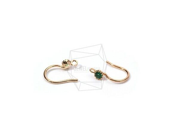 ERG-864-G/4Pcs-CZ Emerald Ear Wire-Emerald CZ Earwires-French Hook Earrings-Tiny Cubic Zirconia Earring Wires-Fishhook-Earring Findings