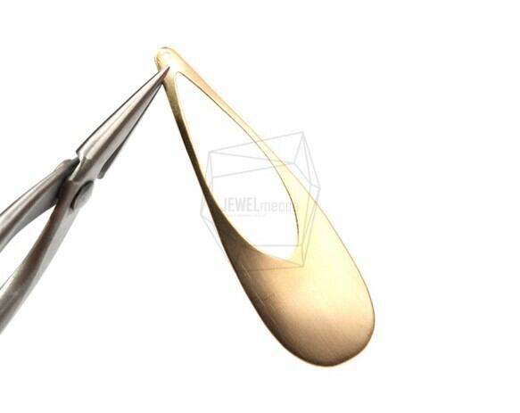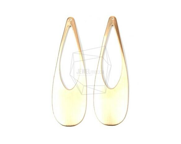 PDT-1335-MG/2PCS/Long Tear Drop Frame Brushed Texture Pendant/20mm X 70mm/Matte Gold Plated Over Iron