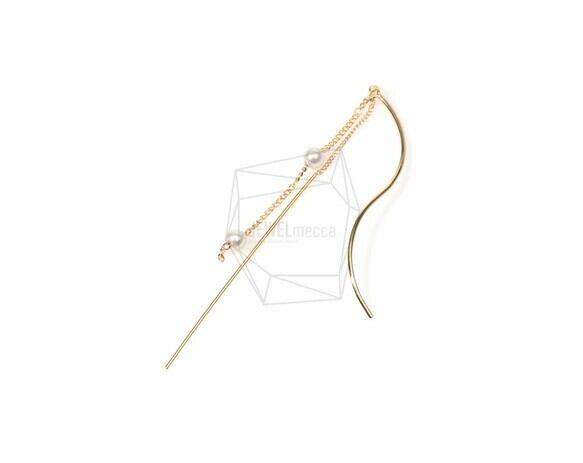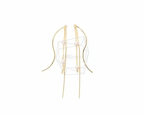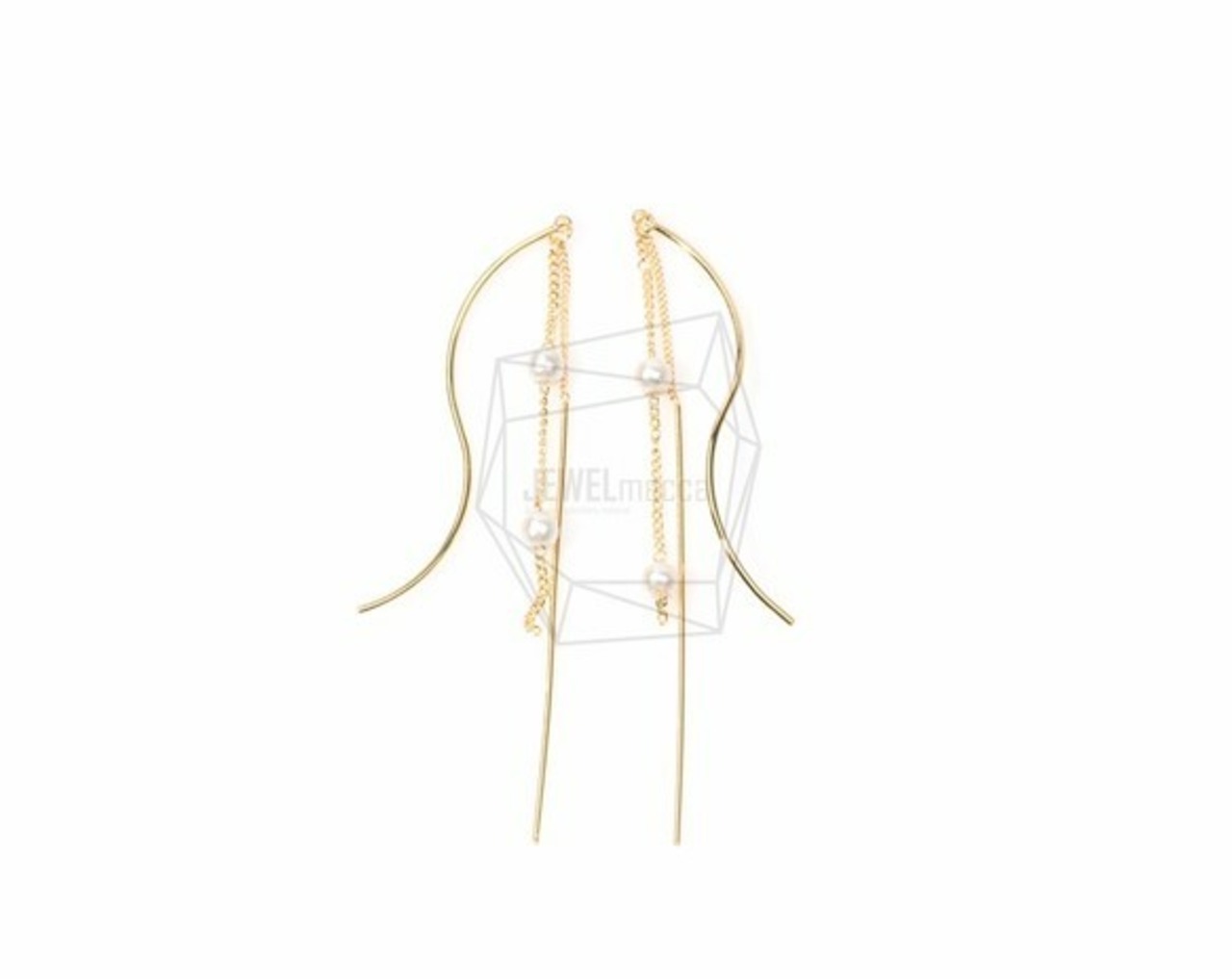 ERG-253-G/4PCS/Pearl and Bar Assorted Chain Grouping Wire Earrings/7cm/Gold Plated Over Brass