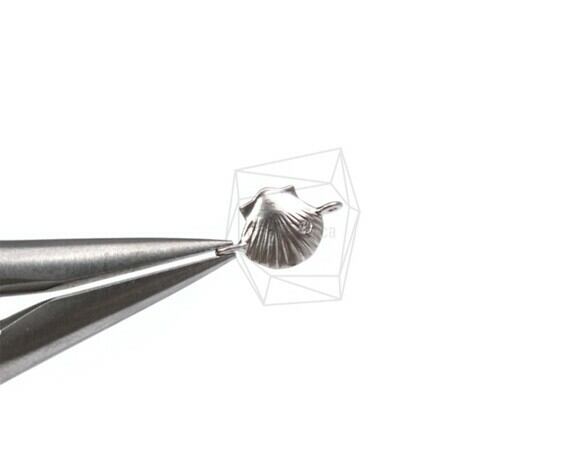 CNT-183-MR/2PCS/Shell With CZ Cubic/12mm X 7mm/Matte Rhodium Plated Over Brass, Cubic Zirconia