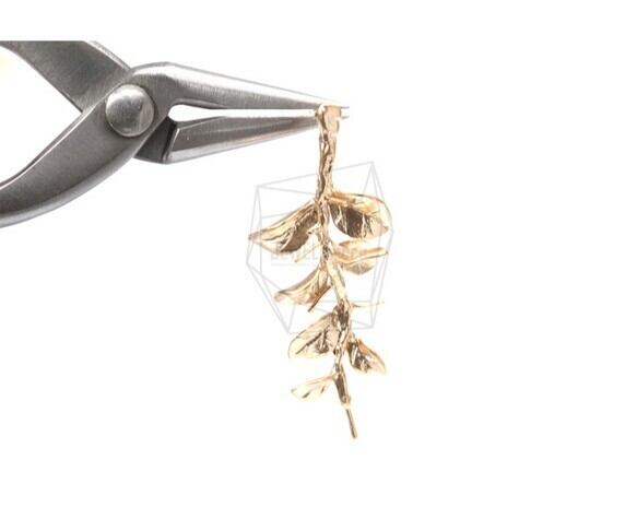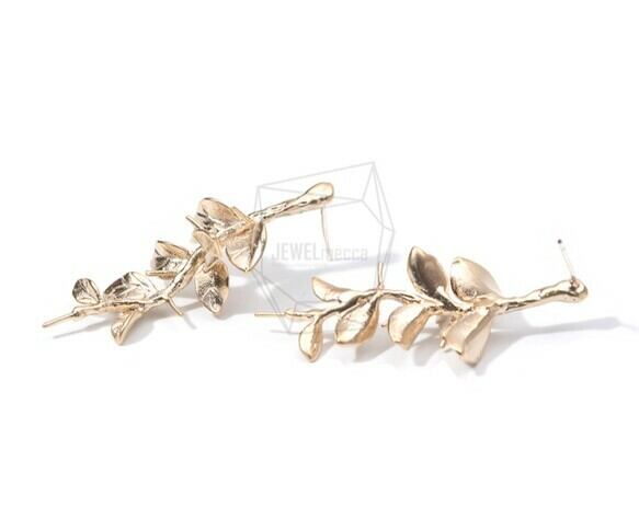 ERG-857-MG/2PCS/Leaf Branch Earring/19mm X 45mm/Matte Gold Plated Over Brass, Silver post