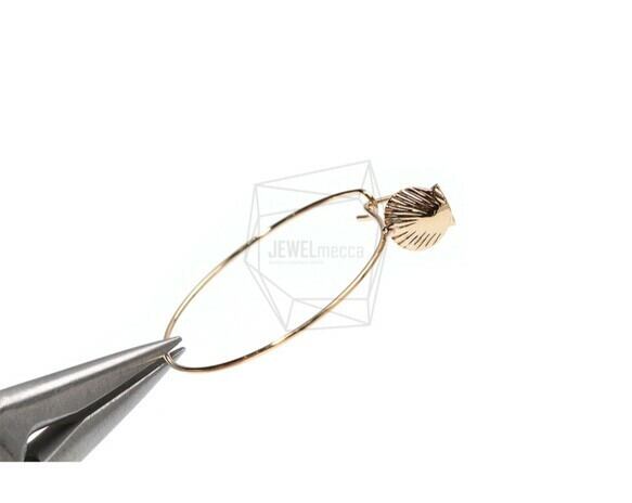 ERG-858-G/2PCS/Round Ring With Shell Earring/28mm X 35mm/Gold Plated Over Brass