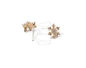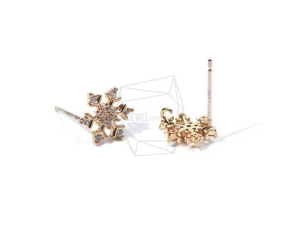 ERG-863-G/2PCS/Snowflake CZ Earring/9mm X 9mm/Gold Plated Over Brass,Cubic Zirconia,Silver Post
