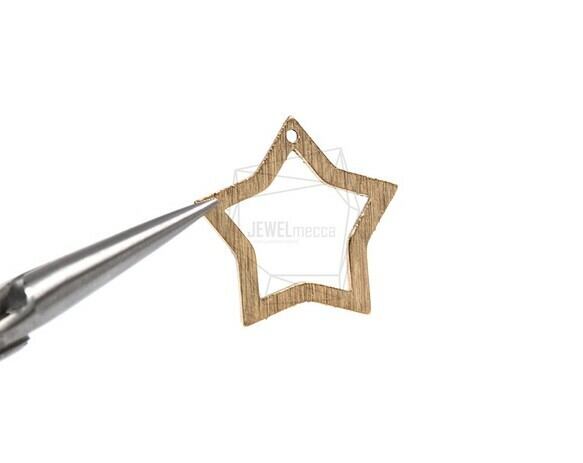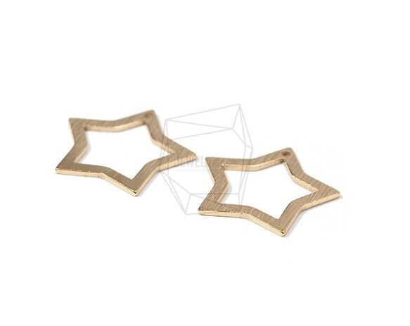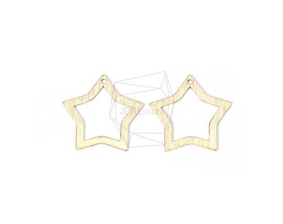 PDT-1661-MG/2PCS/Brushed Texture Star Pendant/23mm X 22mm/Matte Gold Plated Over Brass