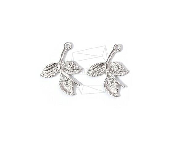 PDT-1662-MR/4PCS/Three Leat Pendant/18mm X 22mm/Matte Rhodium Plated Over Tin