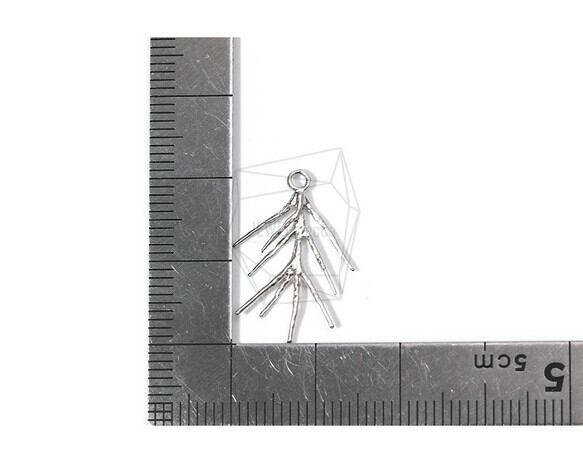 PDT-1664-MR/2PCS/Tree Branch Pendant/15mm X 21mm/Matte Rhodium Plated Over Brass