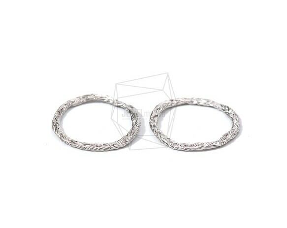 PDT-1665-MR/2PCS/Textured Ring Pendant/18mm X 18mm/Matte Rhodium Plated Over Brass