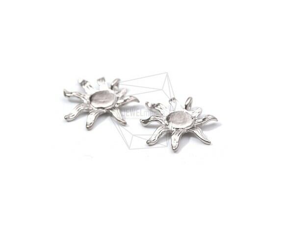 PDT-1669-MR/2PCS/Sun Pendant/14mm X 13mm/Matte Rhodium Plated Over Brass