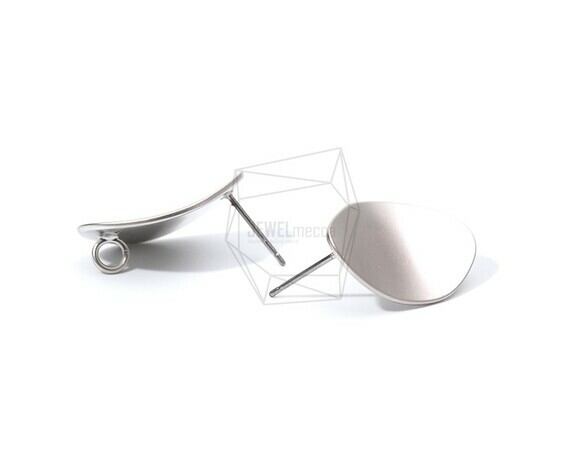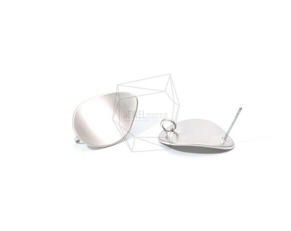 ERG-868-MR/2PCS/Rounded Triangle Post Earring/14mm X 22mm/Matte Rhodium Plated Over Brass