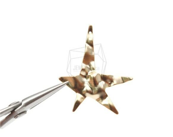 PDT-1484-MG/2PCS/See Star Hammered Texture Pendant/35mm X 45mm/Matte Gold Plated Over Brass