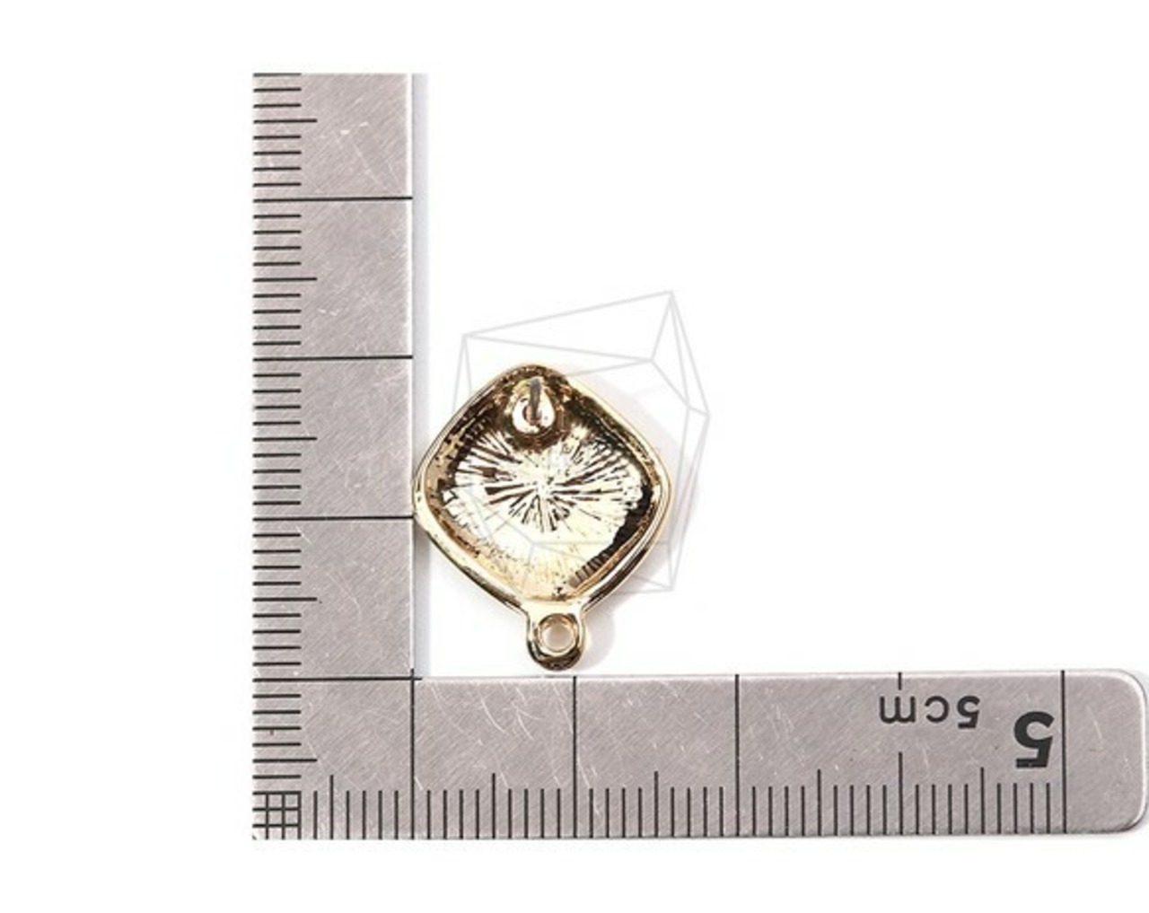 ERG-872-G/2PCS/Epoxy Square Earring Post/12mm X 19mm/Gold Plated over Brass,Titanium post
