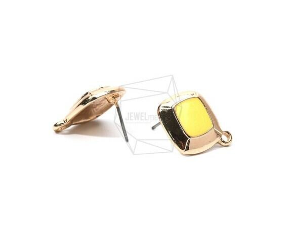 ERG-875-G/2PCS/Epoxy Square Earring Post/12mm X 19mm/Gold Plated over Brass,Titanium post