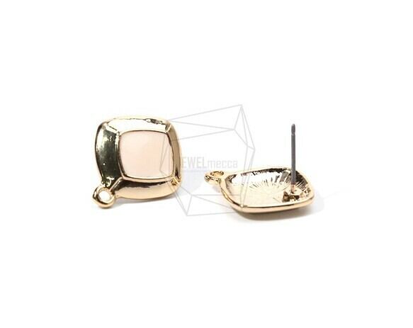 ERG-877-G/2PCS/Epoxy Square Earring Post/12mm X 19mm/Gold Plated over Brass,Titanium post