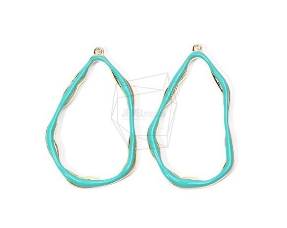PDT-1714-G/2PCS/Epoxy Tear Drop Pendant/28mm X 43mm/Gold Plated over Brass