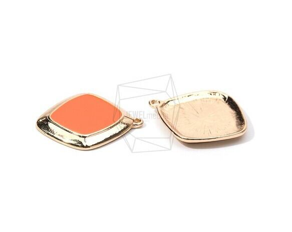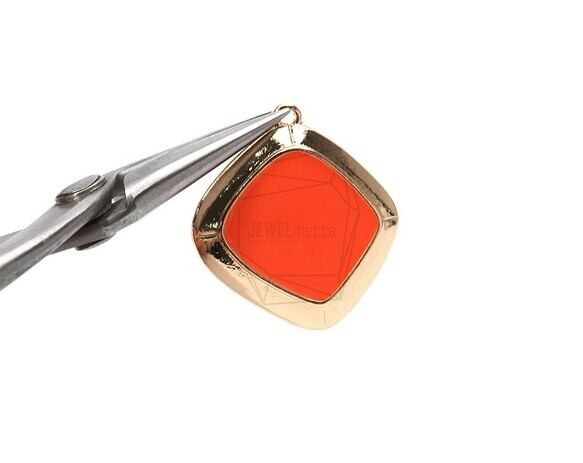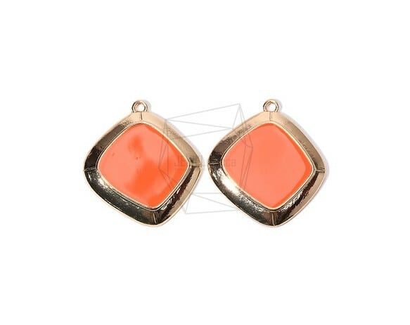 PDT-1720-G/2PCS/Epoxy Square Pendant/27mm X 29mm/Gold Plated over Brass