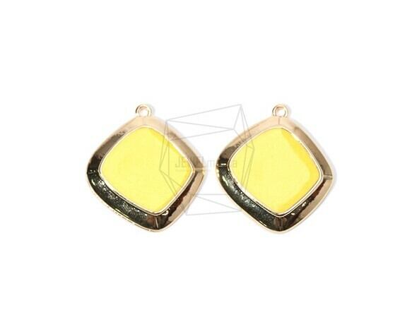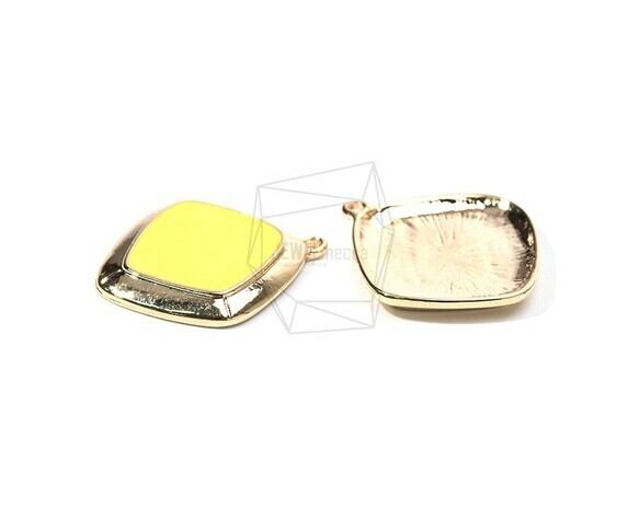 PDT-1721-G/2PCS/Epoxy Square Pendant/27mm X 29mm/Gold Plated over Brass