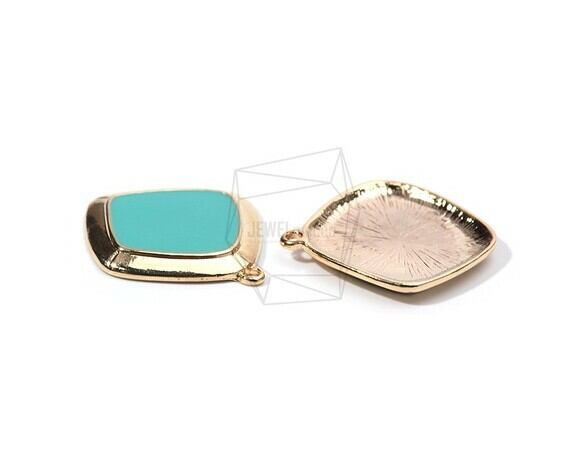 PDT-1722-G/2PCS/Epoxy Square Pendant/27mm X 29mm/Gold Plated over Brass