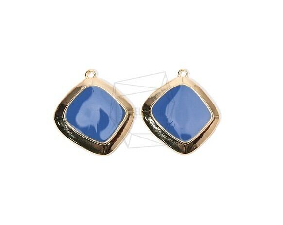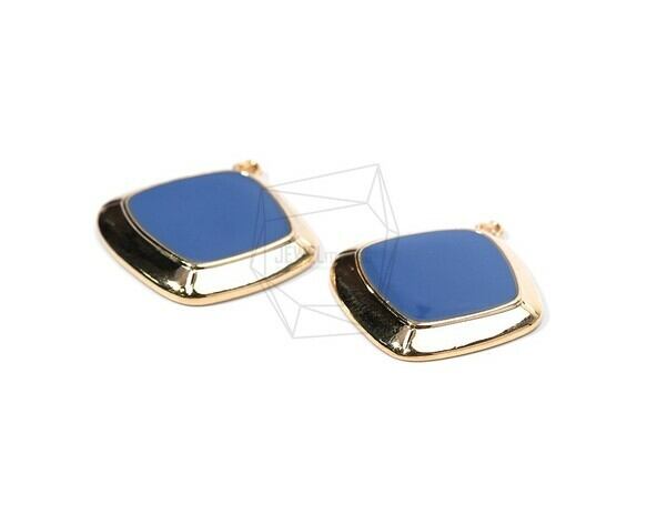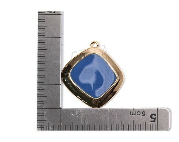 PDT-1723-G/2PCS/Epoxy Square Pendant/27mm X 29mm/Gold Plated over Brass