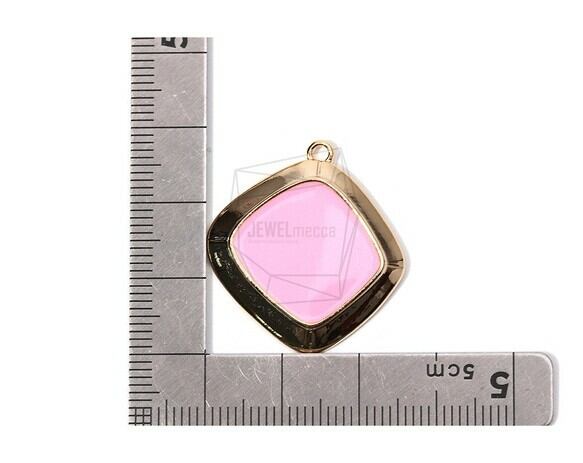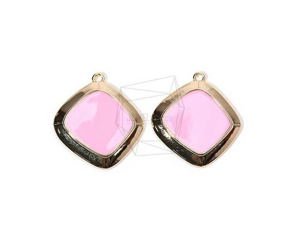 PDT-1726-G/2PCS/Epoxy Square Pendant/27mm X 29mm/Gold Plated over Brass