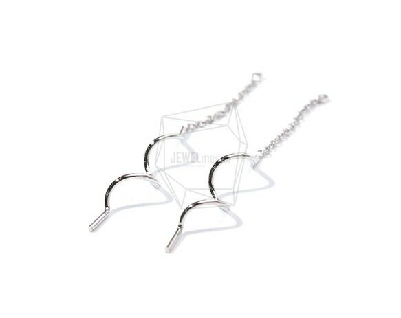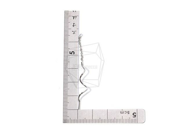 ERG-867-R/2PCS/Wave Drop Chain Earring Charm/7mm X 57mm/Rhodium Plated Over Brass